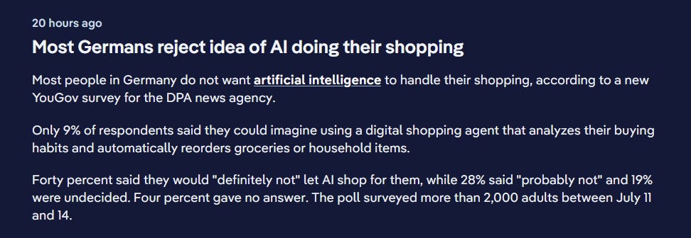 🇩🇪 Germany: Most Germans reject the idea of AI doing their shopping