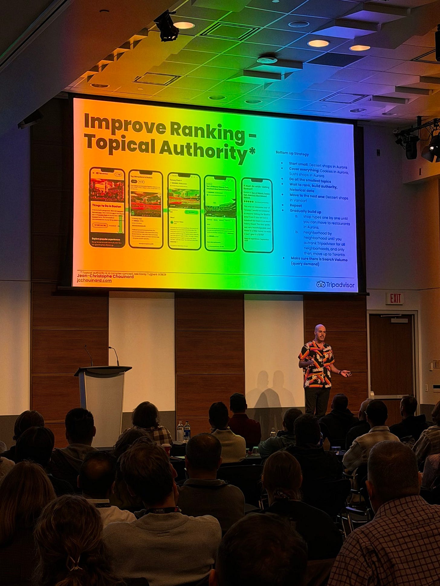 JC Chouinard’s SEO IRL 2025 talk, focuses on building topical authority by starting with niche, high-demand topics like local dessert guides. Start small to establish initial search engine credibility, expansion then involves creating a hub of interlinked subtopics, such as travel guides with related pages, to enhance site authority. Very useful slide and framework!