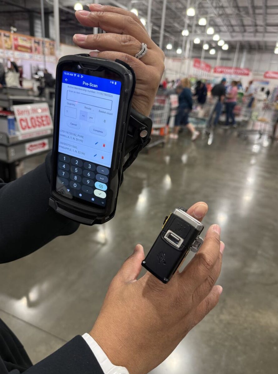 I think it is genius - small finger scanner that helped the associate scan all the items in my cart and THEN magically it talked to the handheld device and the connected experience where it showed up at the Self checkout screen when I scanned my membership card. All I had to do was a quick review and pay with the tap of my card.