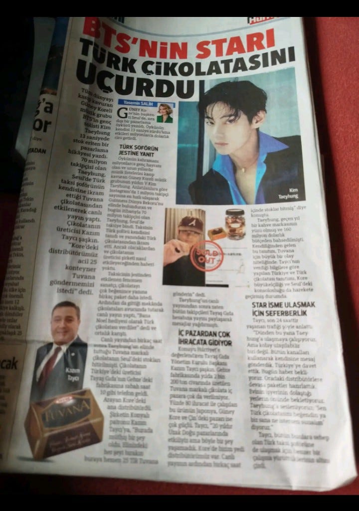 Taehyung, impressed, immediately went live on Weverse (Weverse is a global fandom platform) for about 3 minutes to show it off and express his delight, calling it “Turkish chocolate” with a smile.