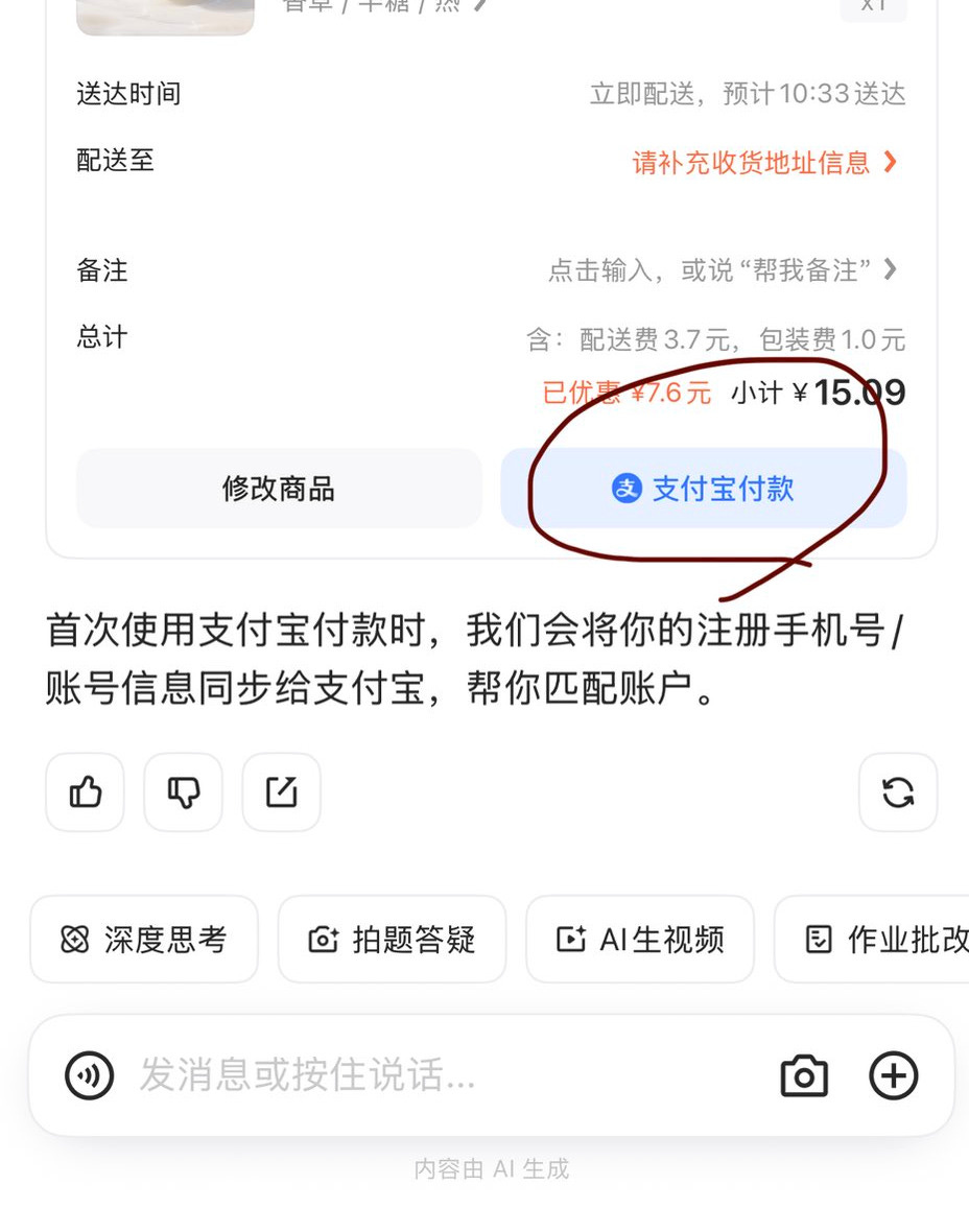 Here’s how it works: you tell Qwen you want food delivery through voice or text. It pulls product data from Taobao Shangou helps you choose what to order, and completes payment through Alipay. You never leave the Qwen interface. This is the complete loop from intent to execution.