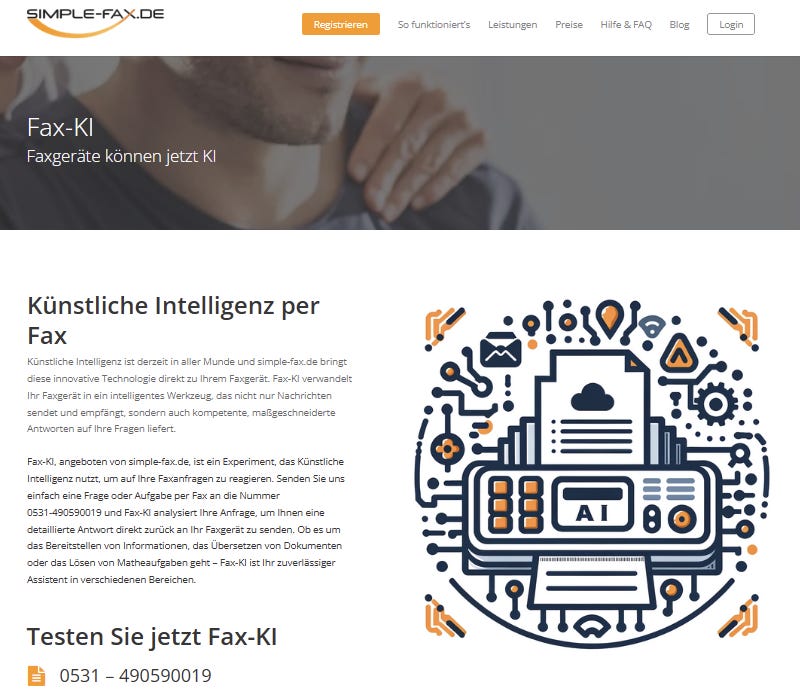 We all know by know Germany is not the most digital nation on earth, despite many talented employees and citizens (believe me I know). But did you know Germany has a FAX AI business model? Yes! No AI overviews, AI Fax views. Send a fax with a question and it will reply back with a FAX with an AI answer.