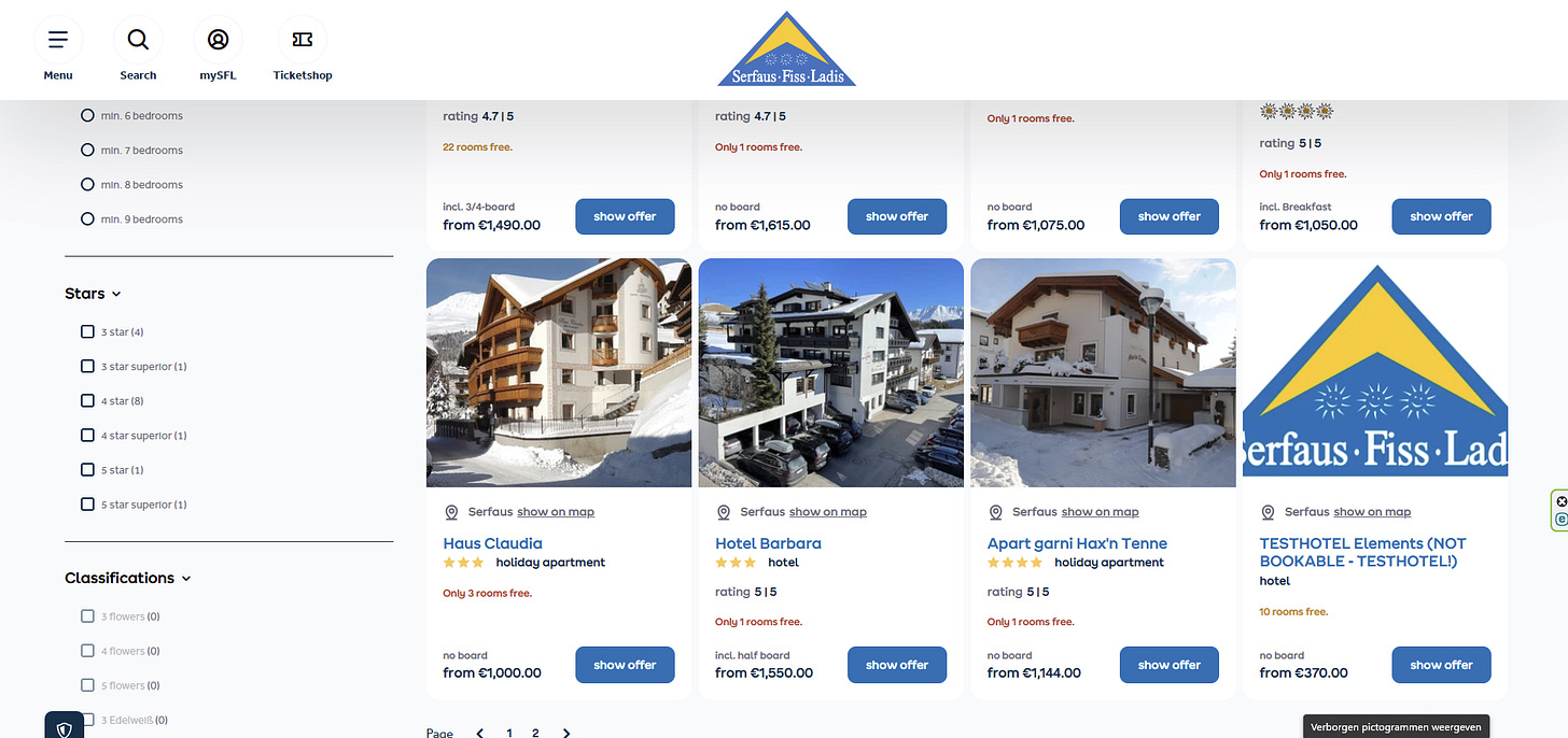 In this case I am trying to book a hotel or pension in Serfaus ski resort but it’s the same at most ski resorts in Austria (maybe with one or two exceptions).
